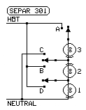 Note that hot and neutral are reversed in this emulation. Items in parentheses must have the setting given. SEPAR 301 on